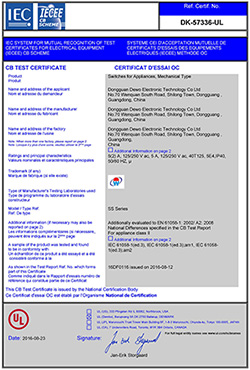 一般型微動(dòng)開(kāi)關(guān)CB證書(shū)