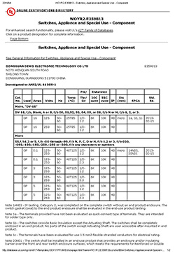 微動(dòng)開(kāi)關(guān)UL證書(shū)
