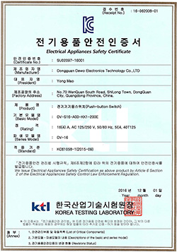 基本型微動(dòng)開(kāi)關(guān)KC證書(shū)